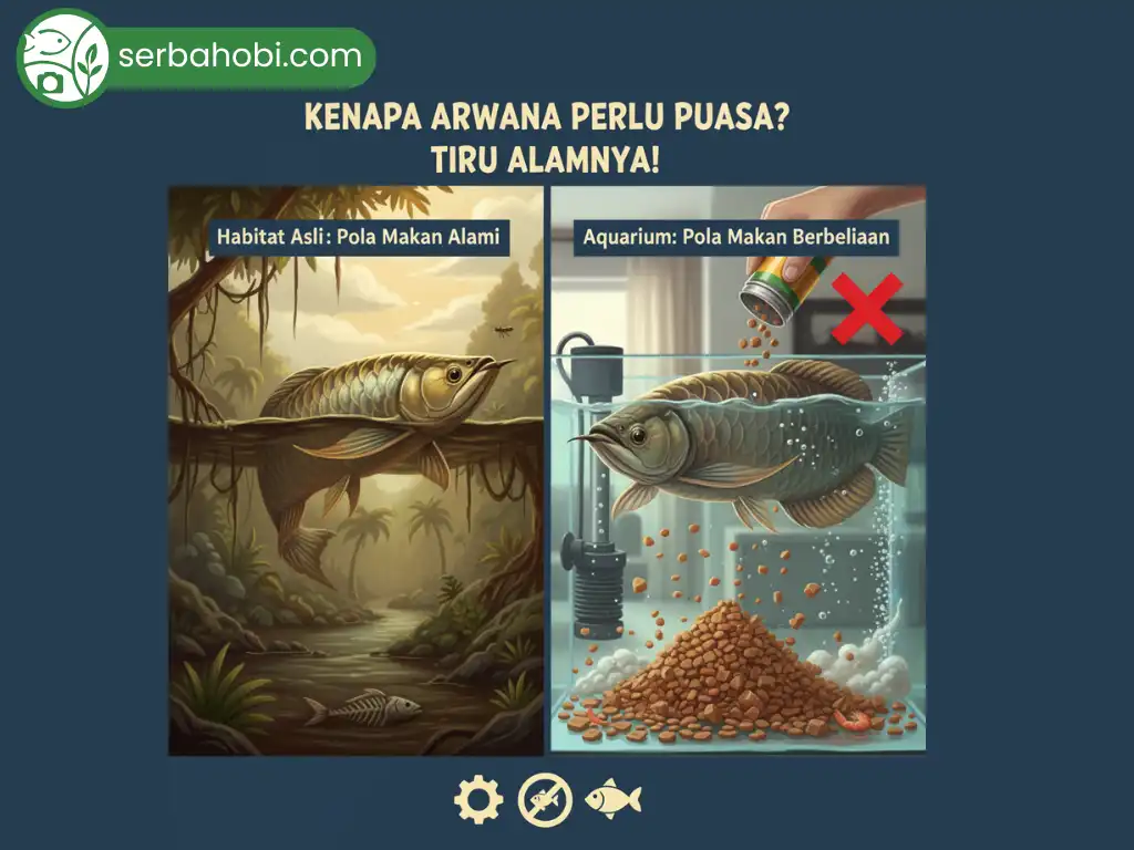 Bayangin kalau kamu makan terus-menerus tanpa jeda. Perut pasti kembung, badan terasa berat, dan energi malah berkurang, kan? Nah, ikan arwana kita mengalami hal yang sama.
